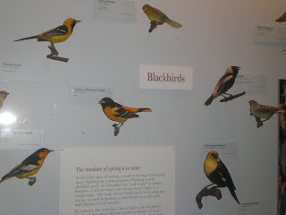 Eu adoro blackbirds, pela música dos Beatles (álbum Branco) e também por serem bonitos, pequenos, negros. Gosto especialmente daqueles com asa vermelha (red-winged blackbirds) da foto acima. É o pássaro mais comun nos Estados Unidos. Quando eu fui para Washington, bati foto de blackbirds em um museu. Aqui vai a minha foto.