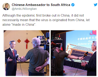 Acima, diplomata chinês quer tirar a culpa da China em relação à pandemia que vivemos. A China anda até dizendo que a culpa é dos Estados Unidos. Pode? Coisas de ditaduras.